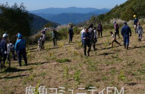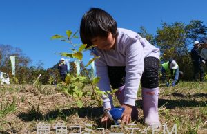 鹿角市花輪の尾根にある牧場の跡地を森に復元しようという植樹のイベントが、ことしも行われました。