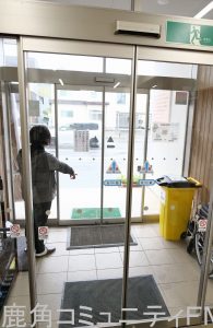 事務所の中の出入り口そばにいた女性によりますと、大きな、どんという音に驚き、見ると、クマが自動ドアにぶつかっていたということです。