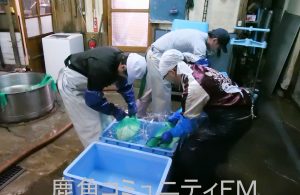 また、コメに傷をつけないようにいたわりながらも、短時間できれいに洗わなければならないため、蔵人たちは寒い作業場でしぶきを浴びながら、ていねいに洗っていました。