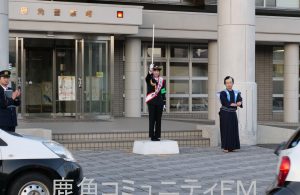 はじめに、元マラソンの世界女王で、地元に住む浅利純子さんが一日警察署長に任命され、「皆さん、マラソンと同様に最後まで完走してください」と呼びかけ、期間中の犯罪、事故の抑止に期待しました。