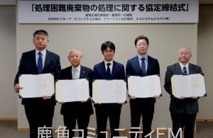 これは、ともに小坂町にある廃棄物の中間処理業者「エコシステム小坂」、埋め立て業者「グリーンフィル小坂」と、そのグループ企業のマネジメント会社「エコシステムジャパン」の3社が、鹿角市と小坂町に提案し実現したものです。