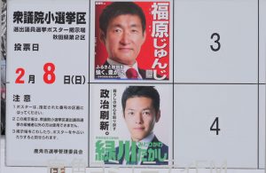 秋田県の3つの選挙区のうち、秋田2区で立候補を届け出たのは、届け出順に
