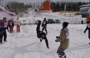 そして、身を放りなげてのレシーブを決めるなど、雪の上のバレーボールならではの楽しさを味わっていました。
