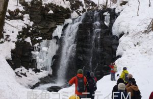 冬に滝巡りを楽しむイベントが鹿角市大湯で開かれ、美しく凍った神秘的な滝を参加者たちが楽しみました。