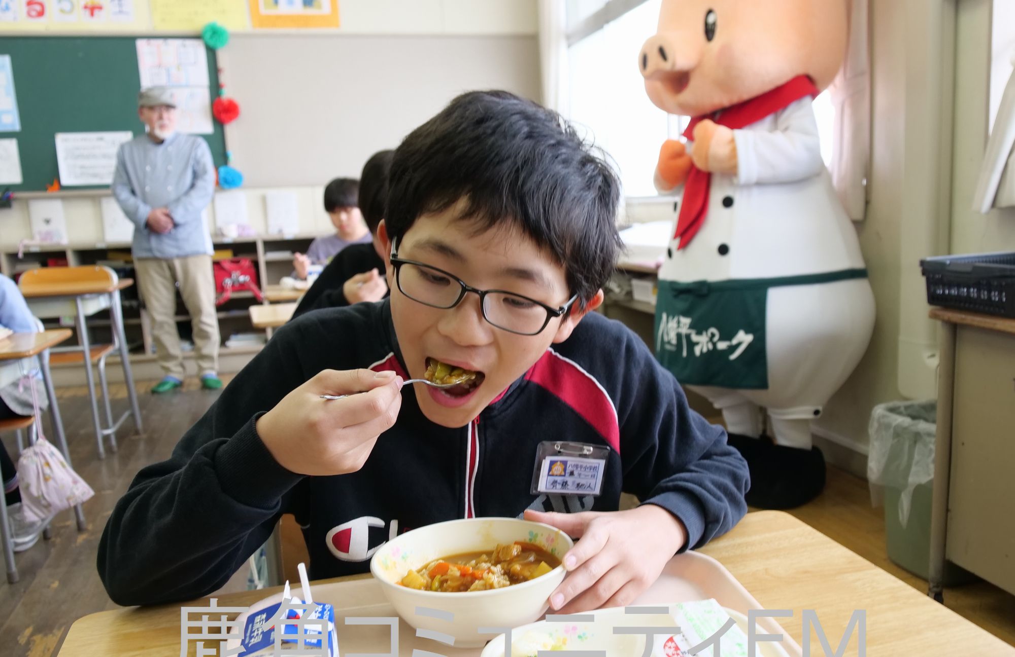 鹿角市の小中学校で地元のブランド豚肉を使った料理が給食で出され、子どもたちがおいしそうにほおばっていました。