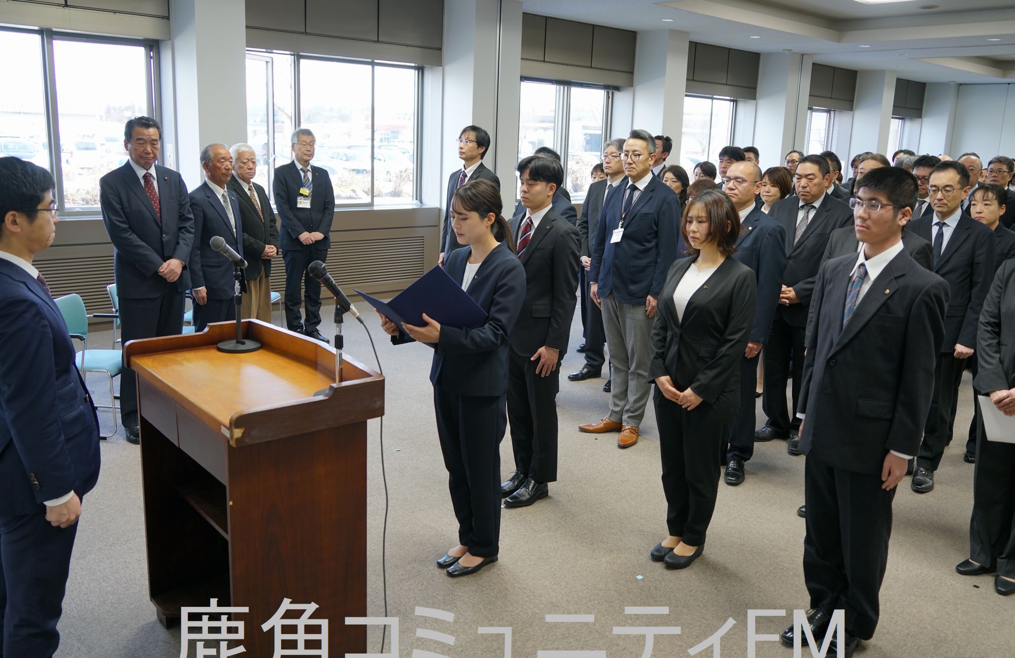 また新採用職員を代表し、教育総務課に配属された川口涼(りょう)さん(30)が、「全体の奉仕者として、誠実かつ公正に職務を執行します」と宣誓しました。