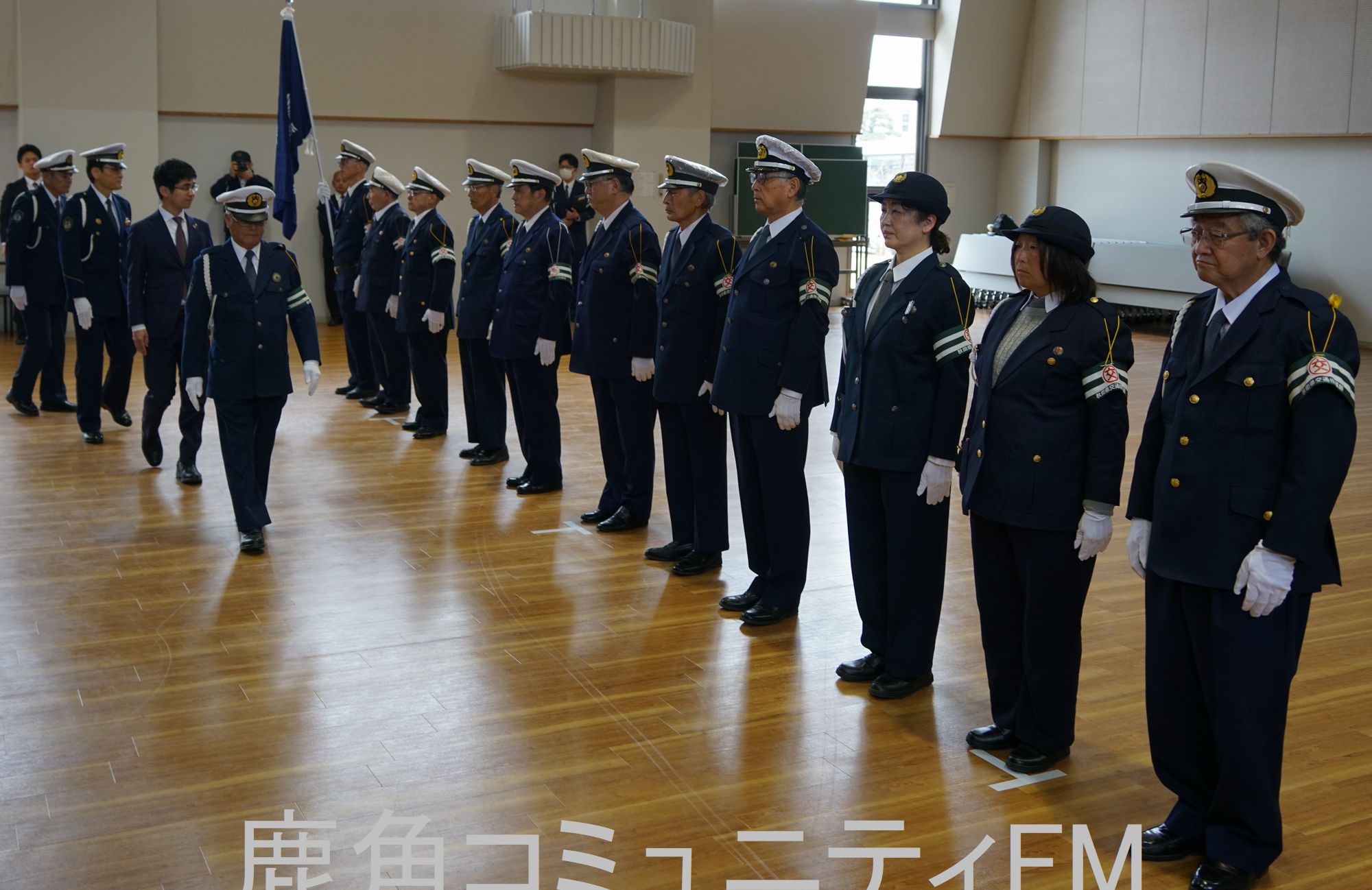 続いて、髙橋安弘隊長(72)の指揮、号令のもと、観閲の隊形をつくって整列し、笹本市長と鹿角警察署の木川達也署長の観閲を受けました。
