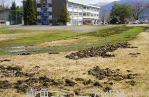 市によりますと今月2日、尾去沢小学校から連絡を受けて現地を確認すると、グラウンドの広範囲が掘り起こされていました。