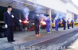 続いて参加者たちは、高速道路で車を停車させた場合に表示が義務づけられている三角表示板や、発煙筒の使い方を確認するなどしました。