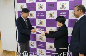 鹿角高校の部活動後援会に激励金30万円を贈ったのは、市の第三セクターの電力小売会社「かづのパワー」です。
