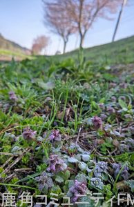 午前7時ごろ、鹿角市花輪の桜の名所、米代川の河川敷では、日かげに残った霜がきらきらと光り、徐々に咲き始めている桜と、季節を超えた、きれいなコントラストを見せていました。
