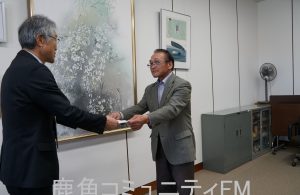 24日に栁舘一郎代表理事(71)が市役所を訪れ、阿部義弘教育長に目録を手渡しました。