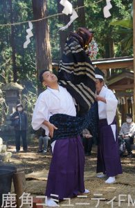 700年以上続くと言われる獅子舞の奉納が鹿角市八幡平であり、地域の平安が祈願されました。